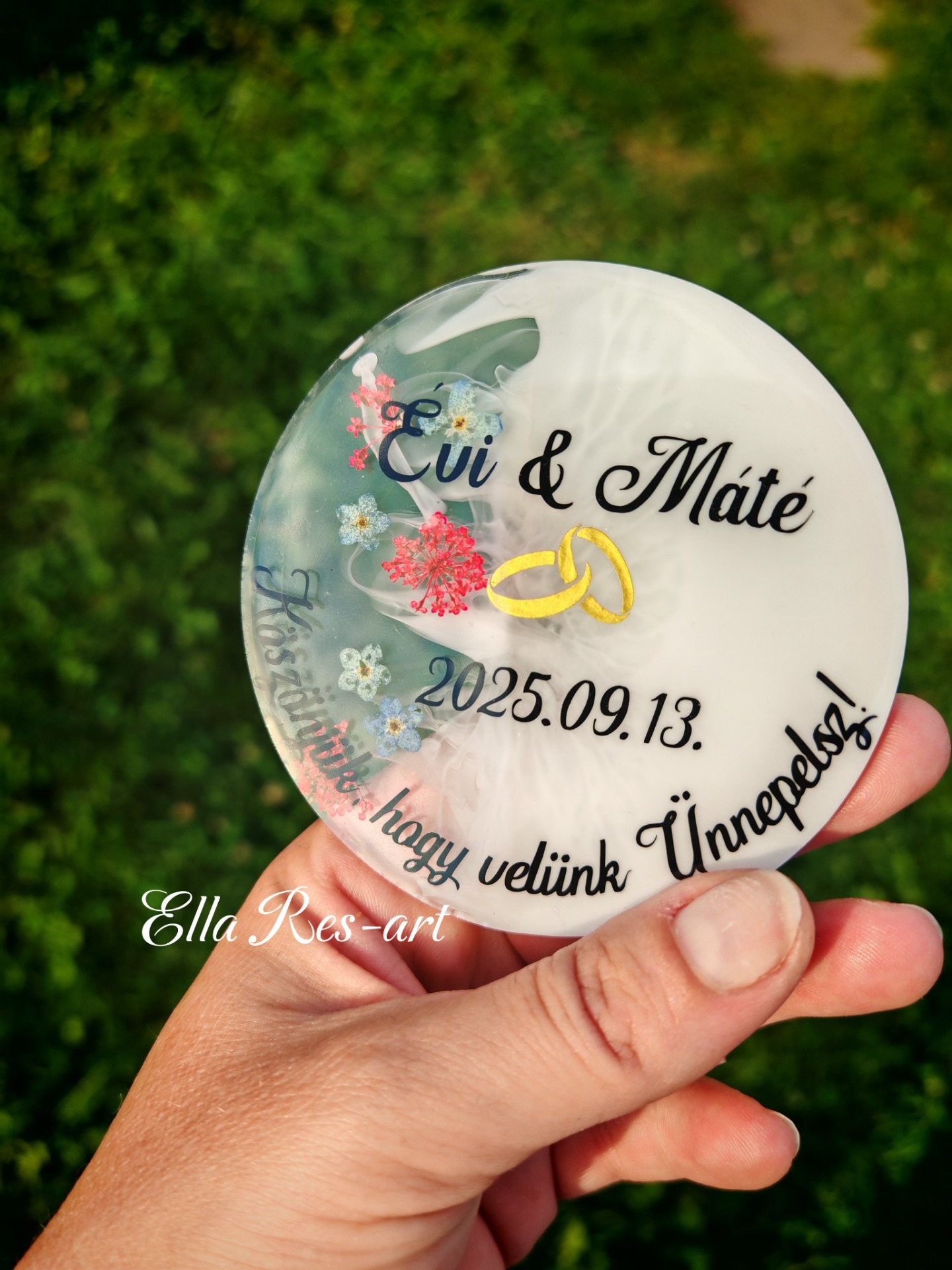 Személyre szabott, szép termékeket kaptunk, gyorsan elkészült, és EllaResArt kedvesen, rendszeresen kommunikált a folyamat során.